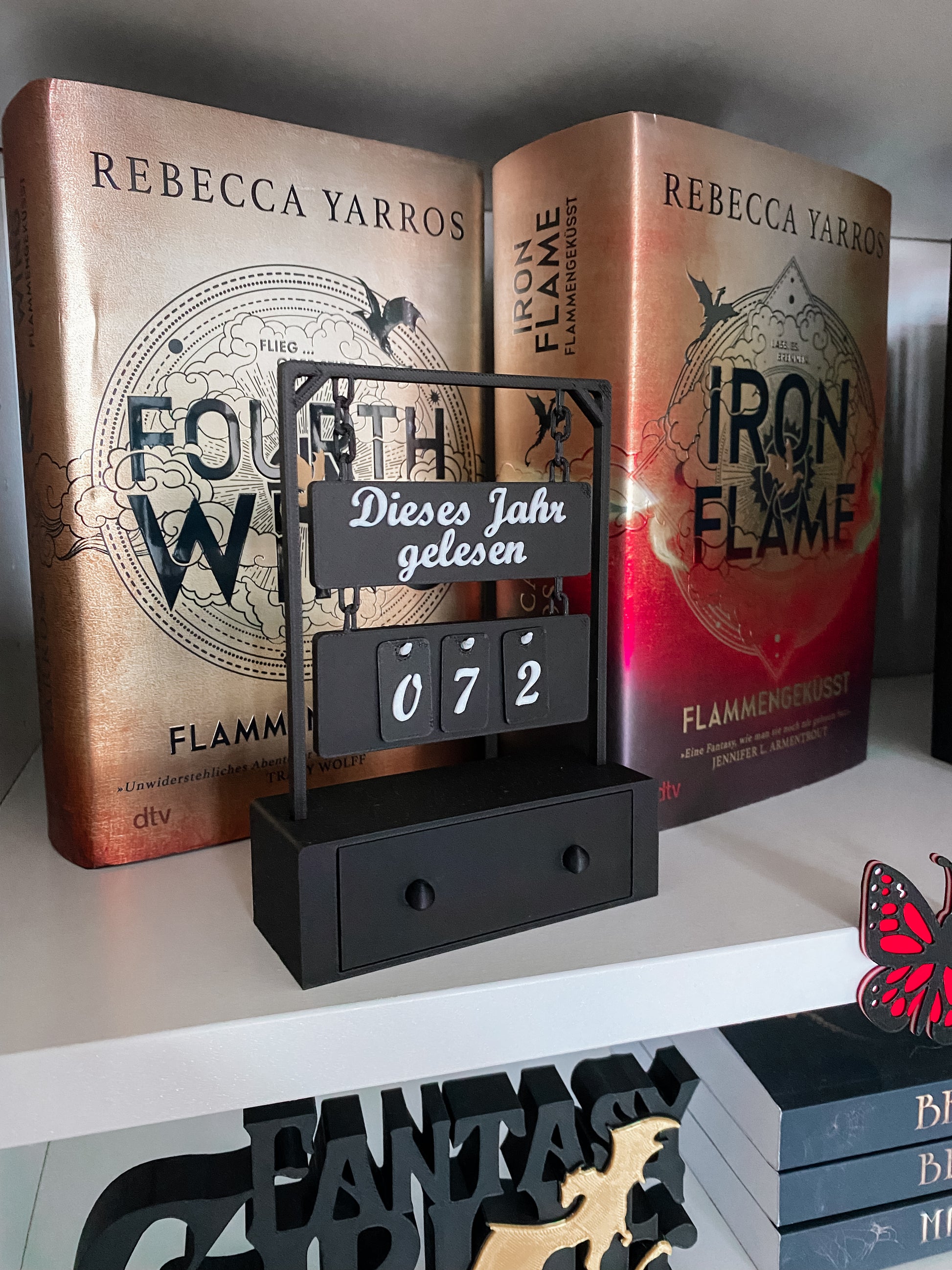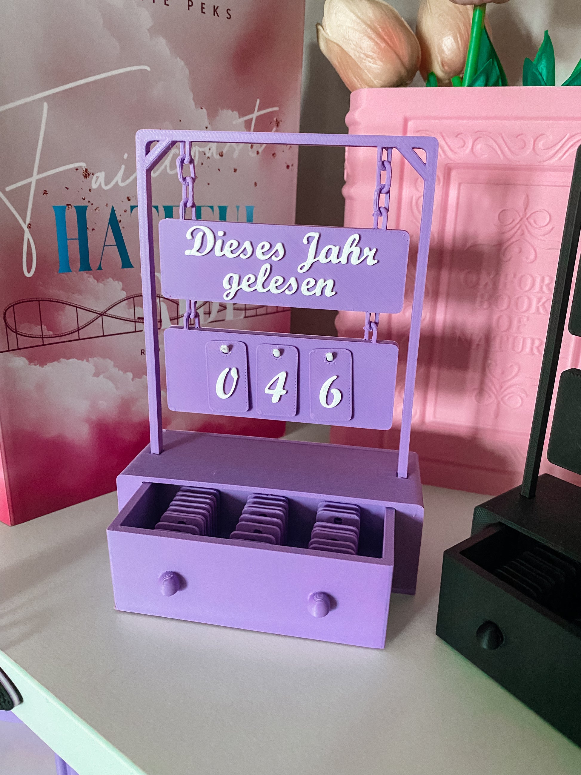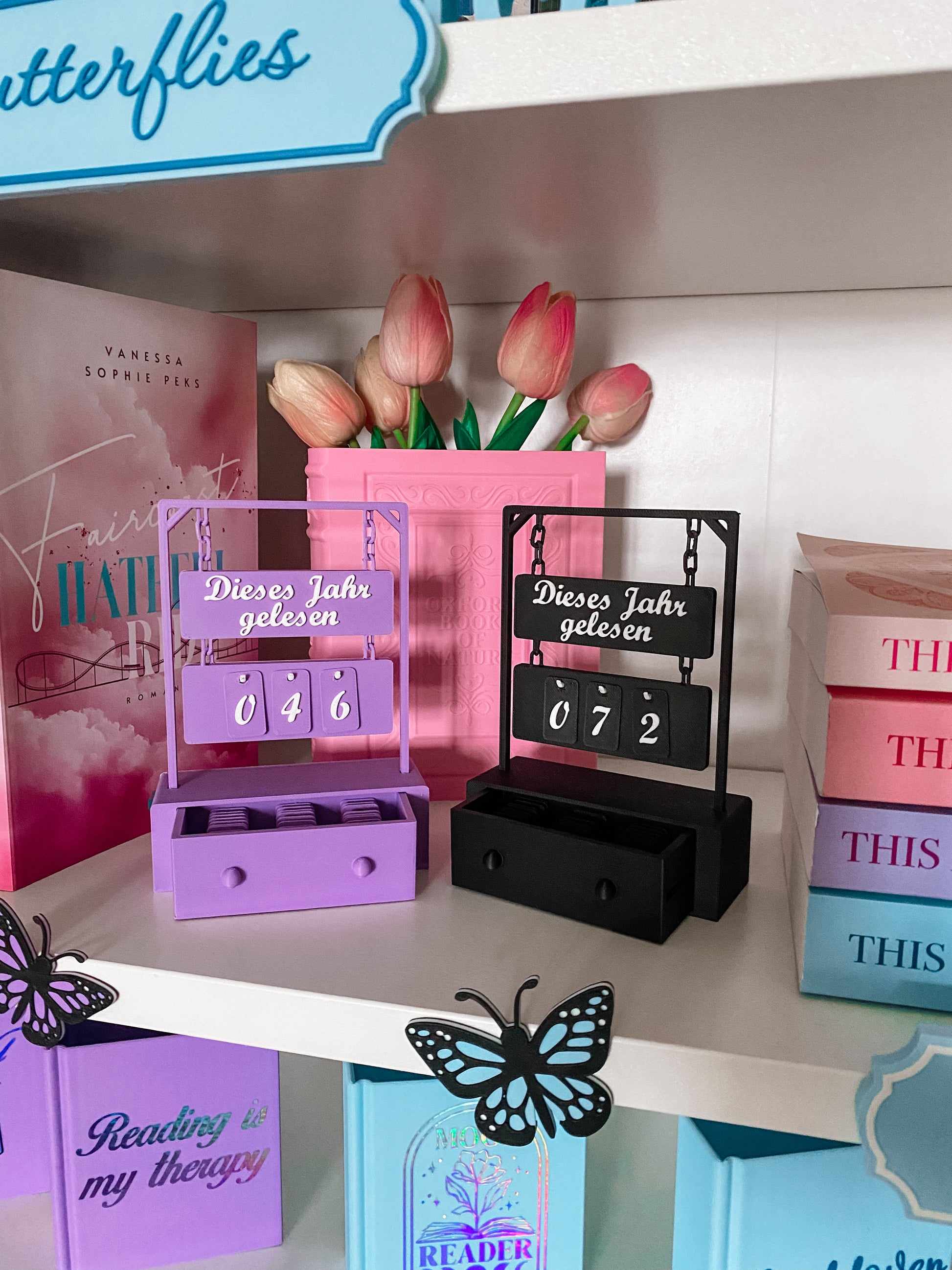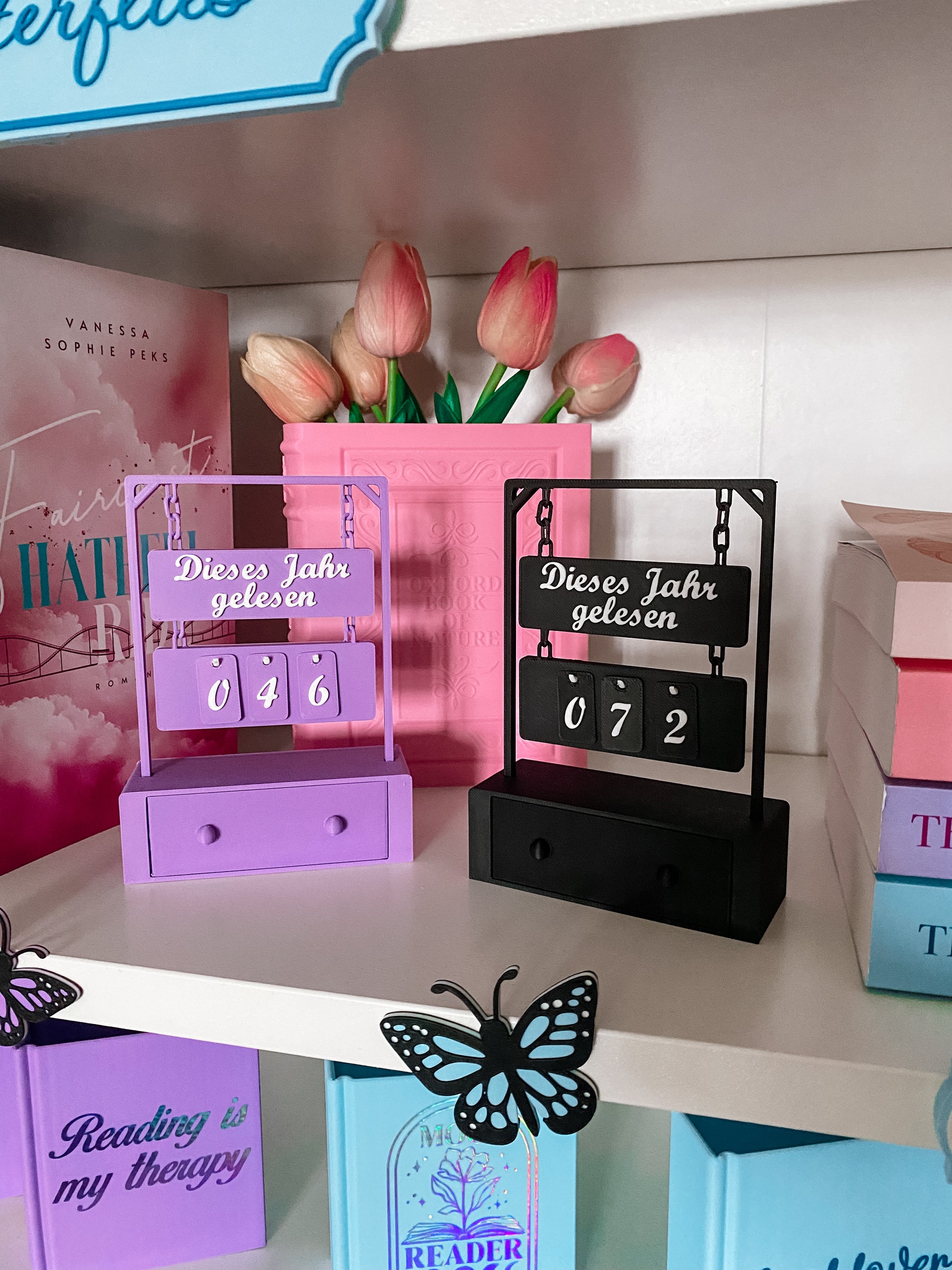Mit dem „Dieses Jahr gelesen“-Zähler kannst du deine Lesefortschritte stilvoll festhalten. Die Zahlen sind ordentlich in der kleinen Schublade verstaut und lassen sich ganz einfach austauschen. Ein praktischer Hingucker fürs Bücherregal – und die perfekte Motivation für alle Leseratten!