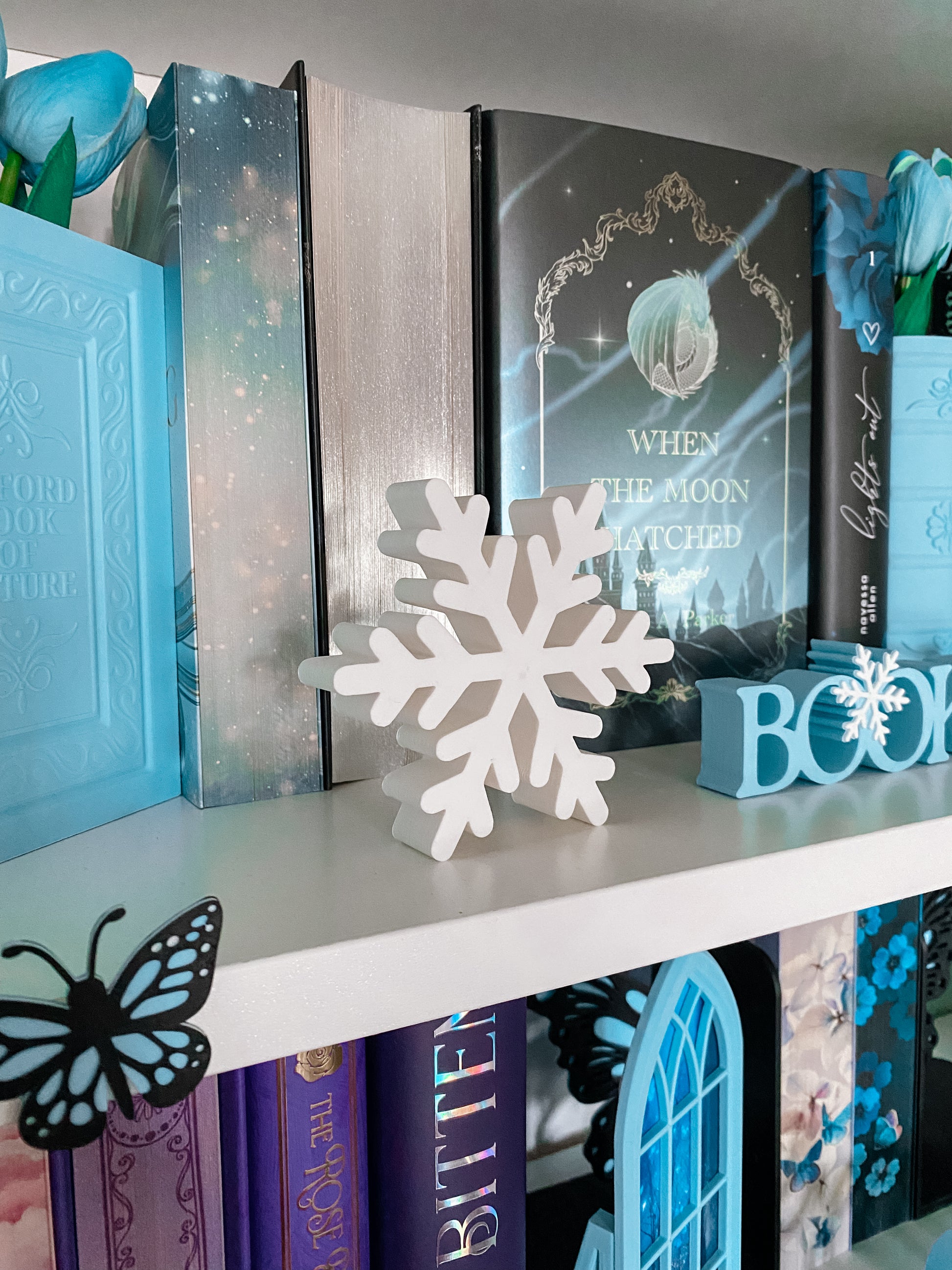 Diese schlichte, aber wunderschöne Schneeflocke bringt sofort winterliche Gemütlichkeit in jedes Bücherregal. Perfekt als Deko für die kalte Jahreszeit.
