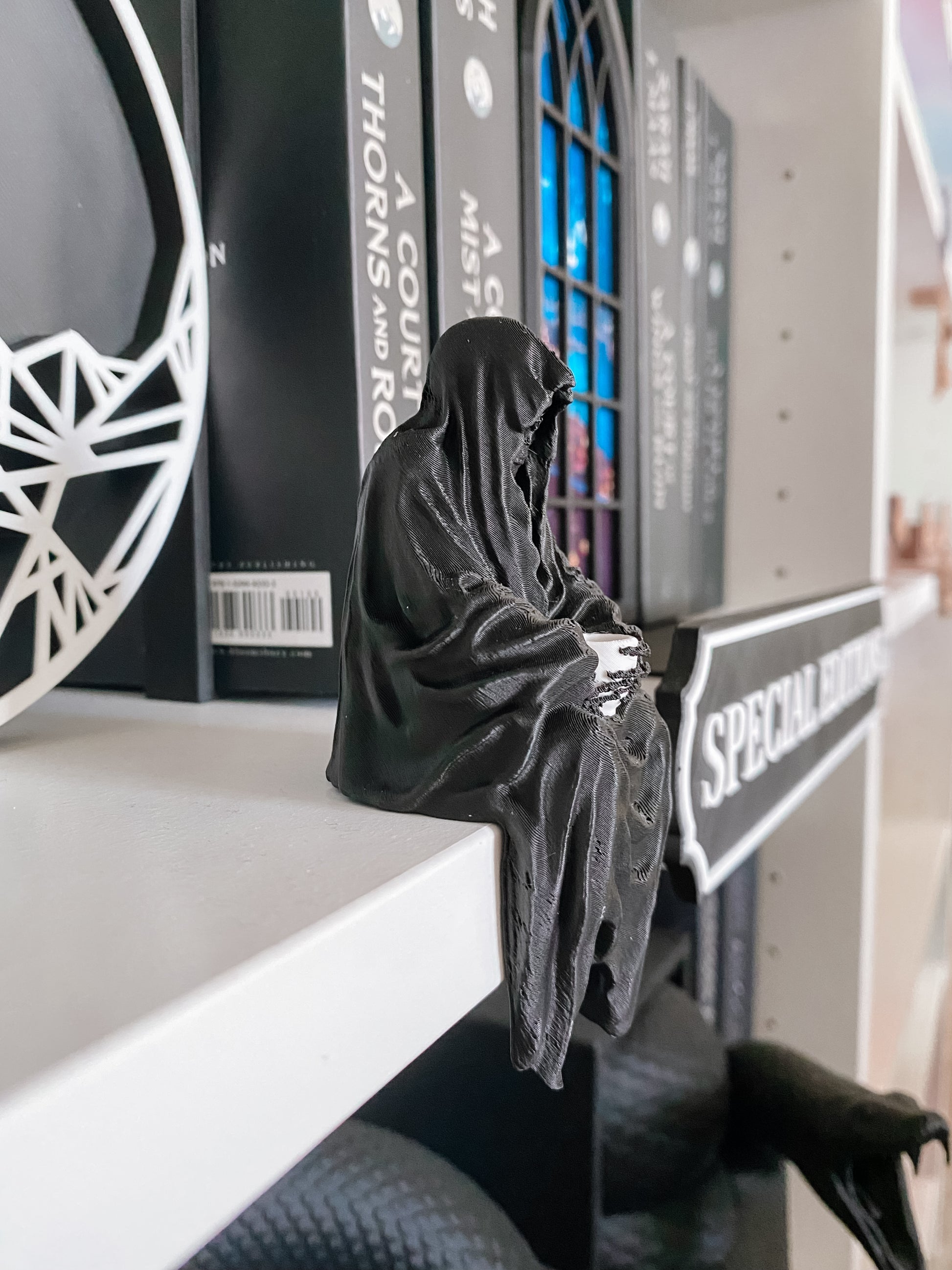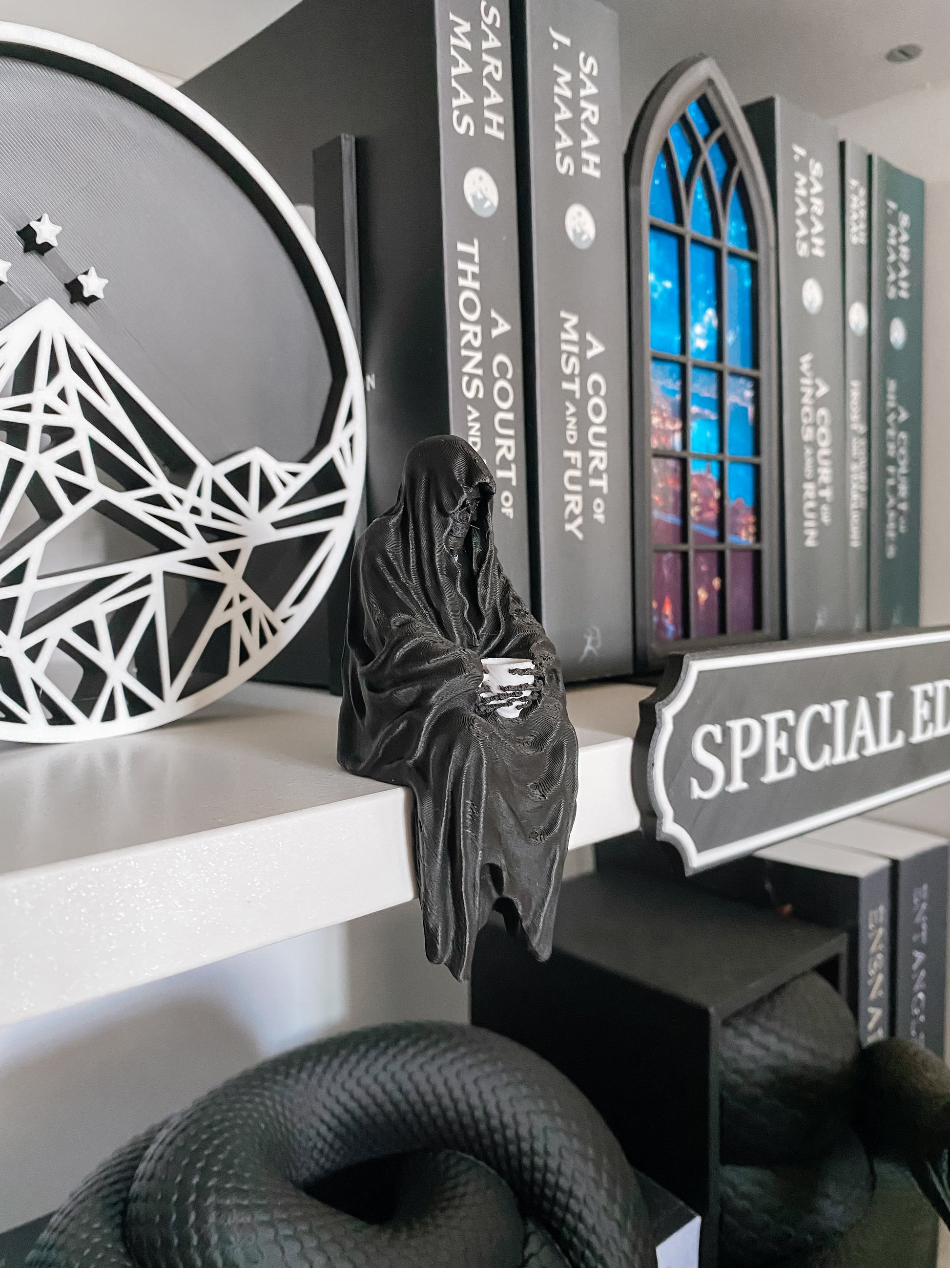 Diese Regalfigur ist wie gemacht für alle, die dunkle Fantasy lieben. Sie sitzt lässig auf der Kante deines Regals und wirkt, als gehöre sie mitten in deine Bibliothek. Perfekt für alle, die ihre Regale nicht nur dekorieren, sondern ihnen Charakter geben wollen.