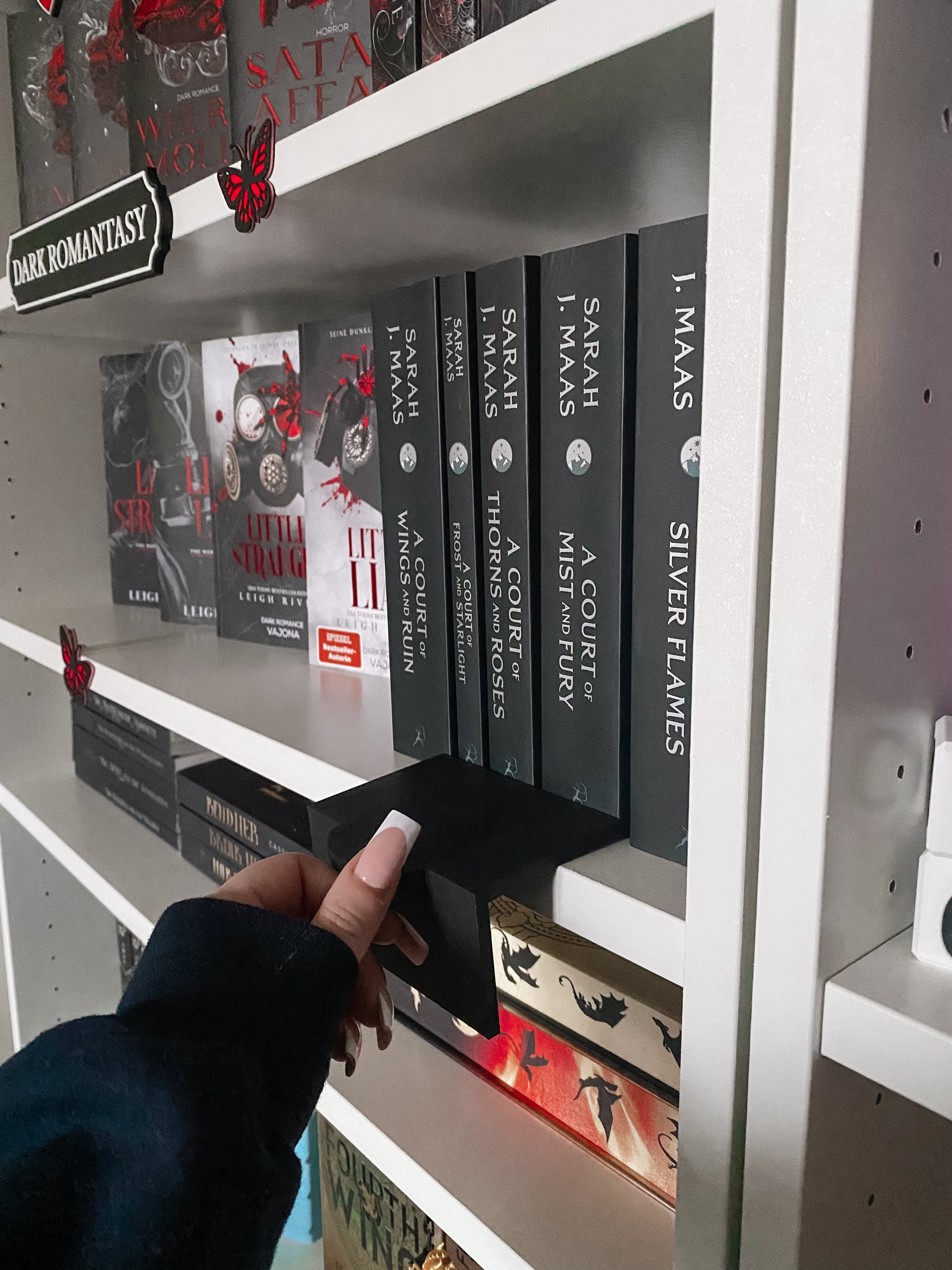 Mit der Buch-Ausrichthilfe stehen deine Bücher im Regal sofort perfekt bündig. Einfach anlegen, entlang schieben – fertig ist das ordentliche Shelfie ohne Nachsortieren.
